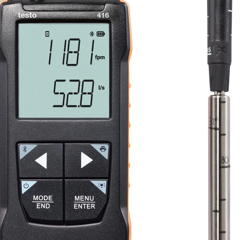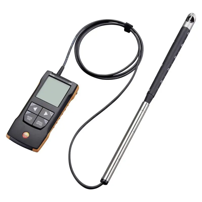 Анемометр Testo 416 New — это современный прибор для точного измерения скорости воздушного потока, предназначенный для использования в различных сферах, включая вентиляцию, кондиционирование и аэродинамические исследования. Его ключевой особенностью является высокая точность измерений, обеспечиваемая минимальной погрешностью, не превышающей ±(0,2 м/с + 1%). Это делает устройство надежным инструментом при проведении профессиональных исследований и технического обслуживания инженерных систем.