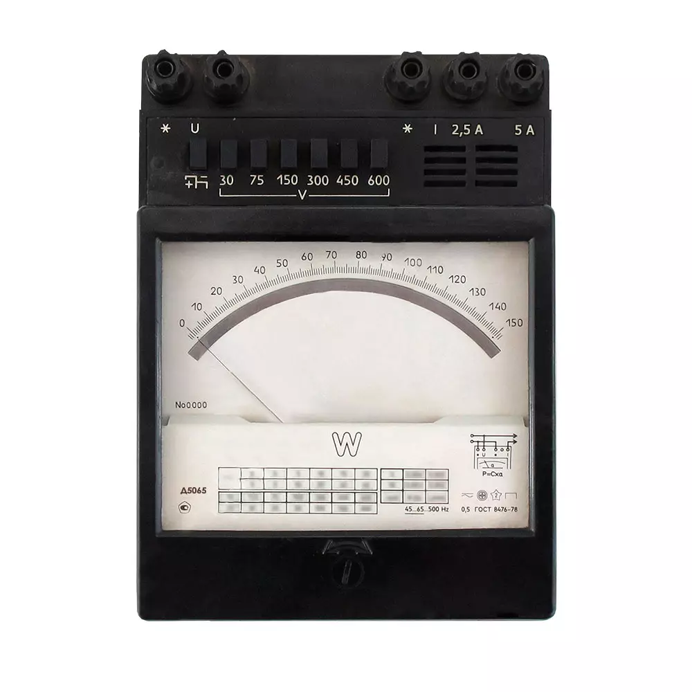 Прибор поддерживает номинальные токи 2,5 и 5 ампер, что позволяет ему работать в системах с разными уровнями тока и адаптироваться к широкому спектру электрических условий. Номинальное напряжение ваттметра охватывает значения 30, 75, 150, 300, 450 и 600 вольт, что предоставляет дополнительную гибкость в настройках и позволяет прибору использоваться в системах с различными уровнями напряжения.