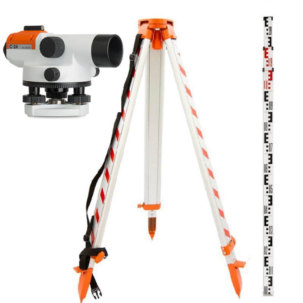 Устойчивый штатив с плоской площадкой позволяет установить нивелир на высоте до 170. В сложенном состоянии тренога не занимает много места и стягивается ремнем, что делает более удобной перевозку комплекта нивелира со штативом и рейкой в салоне автомобиля или общественного транспорта