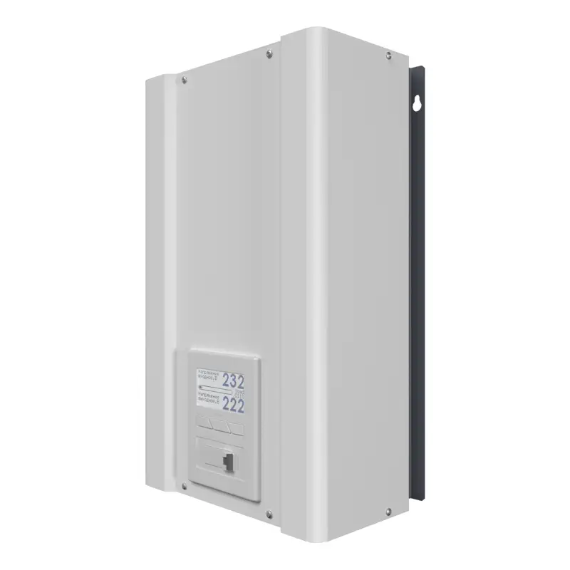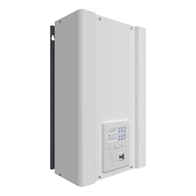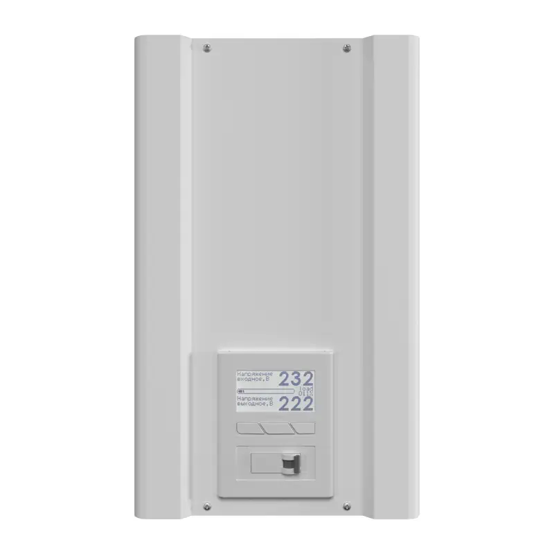 Одной из ключевых особенностей модели является девятиступенчатая система стабилизации, позволяющая точно поддерживать выходное напряжение даже при значительных скачках на входе. В качестве коммутирующего элемента здесь используется тиристор — полупроводниковый прибор, отличающийся высокой скоростью срабатывания, долговечностью и отсутствием механического износа. Это обеспечивает плавность регулирования и минимальное время реакции на изменения входного напряжения — всего 20 мс. Высокий КПД устройства, превышающий 98%, говорит о его эффективности и экономичности, а потребляемая активная мощность на холостом ходу не превышает 35 Вт, что делает эксплуатацию еще более выгодной.